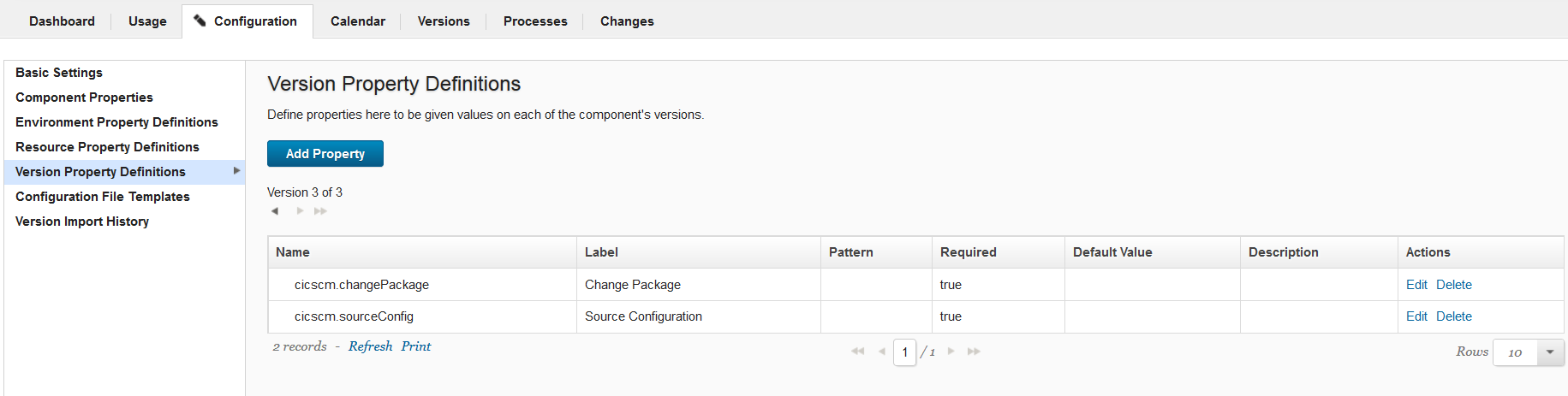 You need to have an existing version or create a version in the component that you want to use for the change package. Each version includes the change package name and the source configuration name.