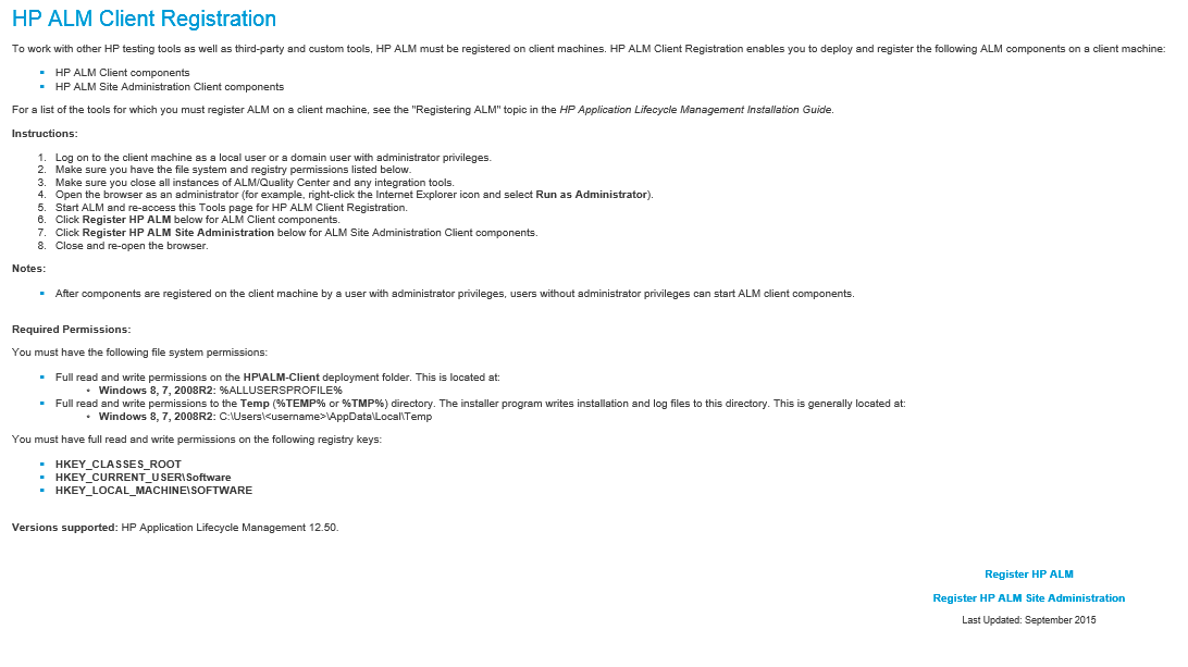 HP ALM Client Registration