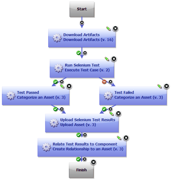 - Based on the outcome of the Execute Test Case step, the Categorize an Asset step is used to mark the status of the component asset as Test Passed or Test Failed.