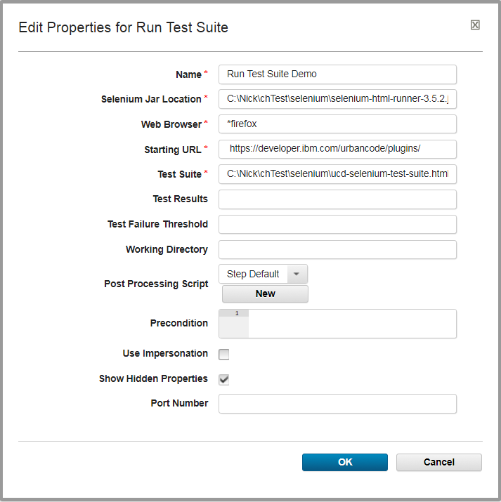 The Run Test Suite step automates running of a Selenium test suite in an IBM Urban Code Deploy process. The step starts a temporary Selenium server and passes the specified test suite, which contains one or more tests, to be processed. The test suite can be created using Seleniums IDE and is written in a format called Selenese. The prior link is to documentation about Seleniums IDE and instructions on how to create a test and test suite. If this is your first time using Selenium, we recommend you start here. Once you have a firm understanding of Selenium and its uses, we encourage you to replicate the short tutorial below.