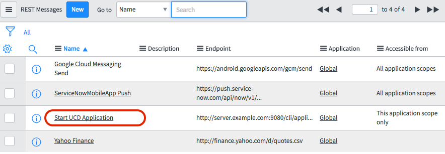 - Under System Web Services -> Outbound -> REST Message, Create a new REST Message for calling your UCD Application Process.