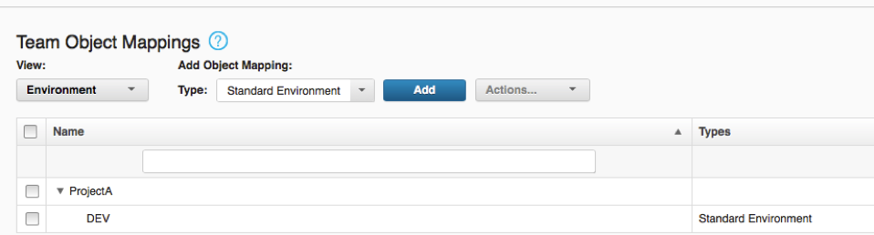 Note that Ive only added ProjectA to the TeamA team. I also add the DEV environment to the TeamA group as well: