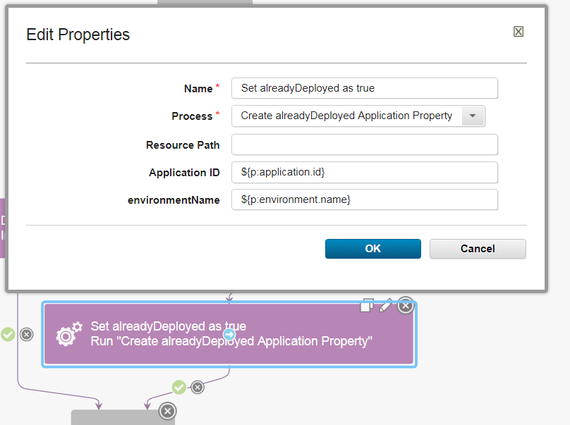 This deployment solution requires the use of a generic process to properly enable the the parallel deployment strategy. The downloadable JSON file above is my configured generic process to give you a jump start in recreating this example. Simply import this process into your IBM DevOps Deploy server to have a readily available generic process. (The file may need to be renamed to have the .json extension.) Ensure you set the Default Resource in the Configuration > Basic Settings as this will make the following configuration step easier. The Create Application Property process will create and set the alreadyDeployed application property for a specified application. This process utilizes the IBM DevOps Deploy Applications plug-ins Create Application Property step.
