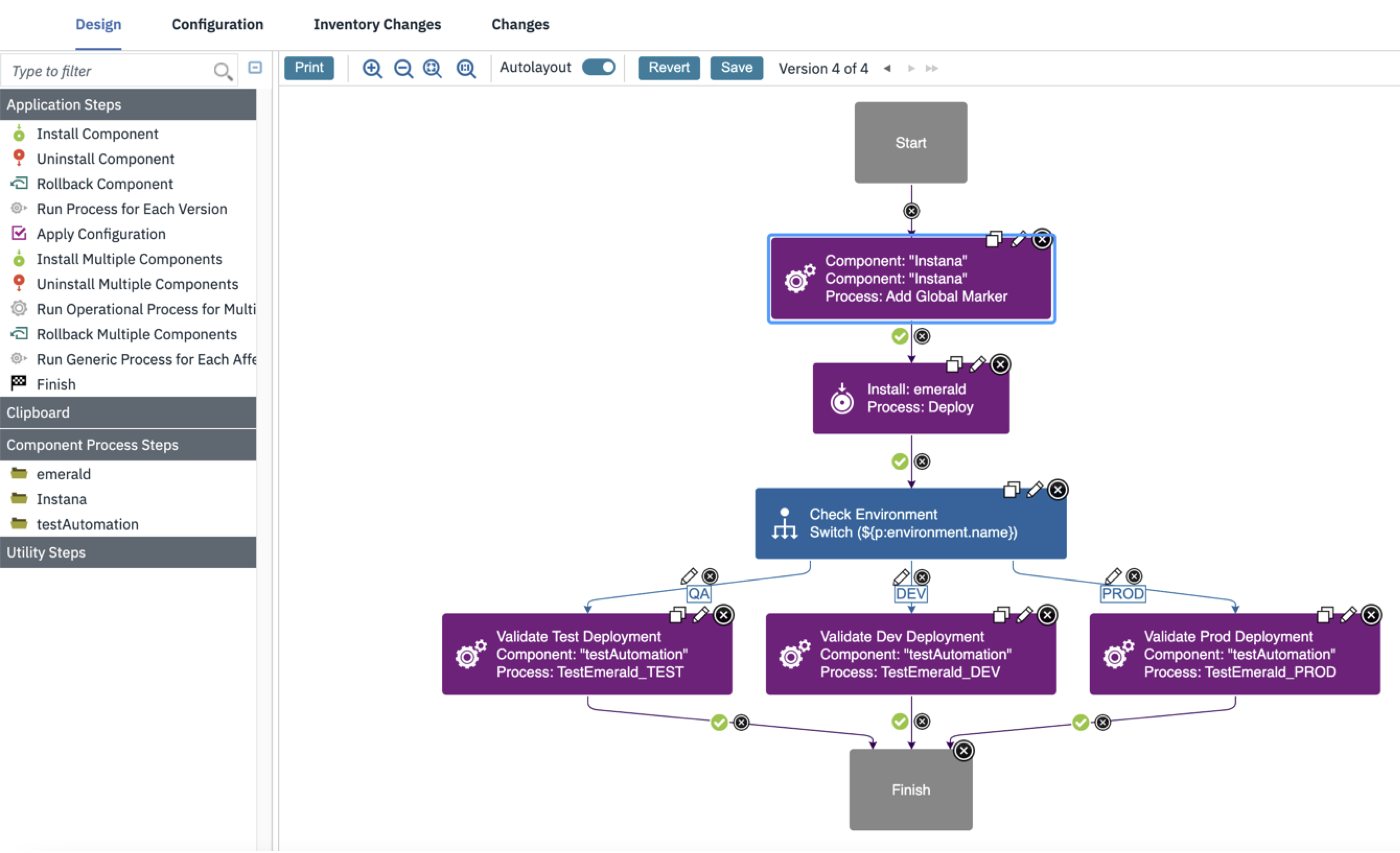 - Connect the Instana process step at the appropriate location in the application deployment process.