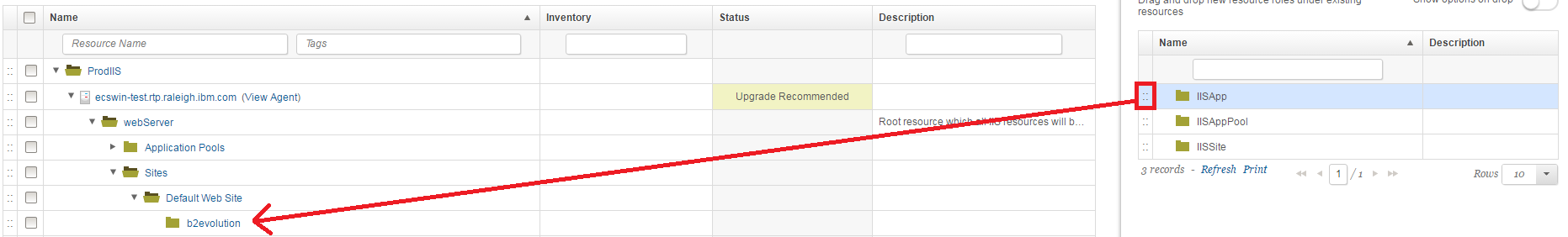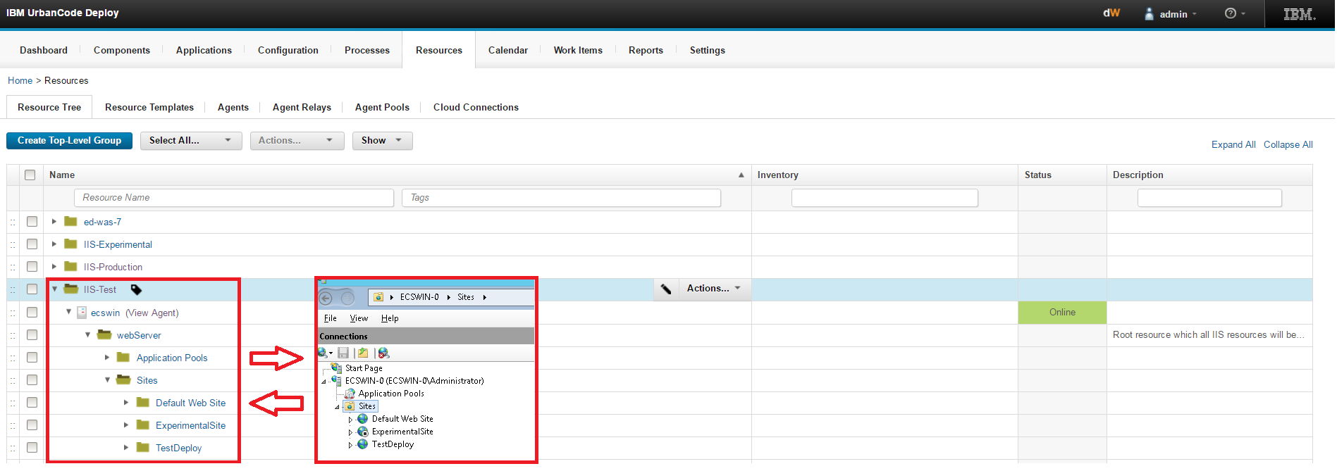 - Create a resource topology in IBM DevOps Deploy that models the IIS topology.