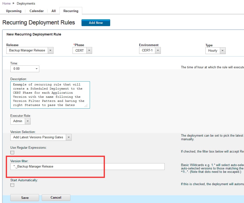 - Recurring rules can use patterns, such as simple naming patterns or a regular expression, to select versions automatically. By naming snapshots after releases, a recurring rule can be used to determine the intended release for a snapshot. For example, the following naming pattern can be used by a recurring rule.Using this simple pattern, a recurring rule can select only those versions that follow the pattern.