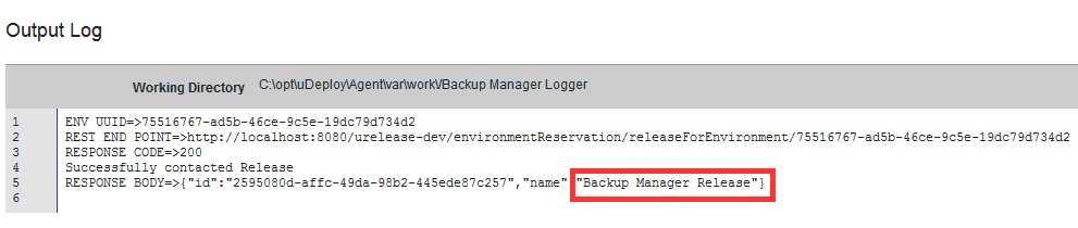 When this sample process runs, it captures the name of the release, as shown in the following illustration.