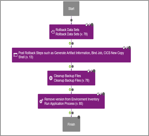 To rollback Z Artifacts, run Rollback Z Artifacts process to run all the rollback steps under component process. The Component process triggers Remove Version From Inventory process only when artifacts are rolled back and all the steps ran successfully.