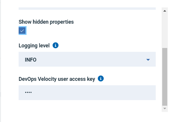 Devops Velocity User Access Key | An auto-generated user access key provides credentials for communicating with the Velocity server. | Yes | NA |